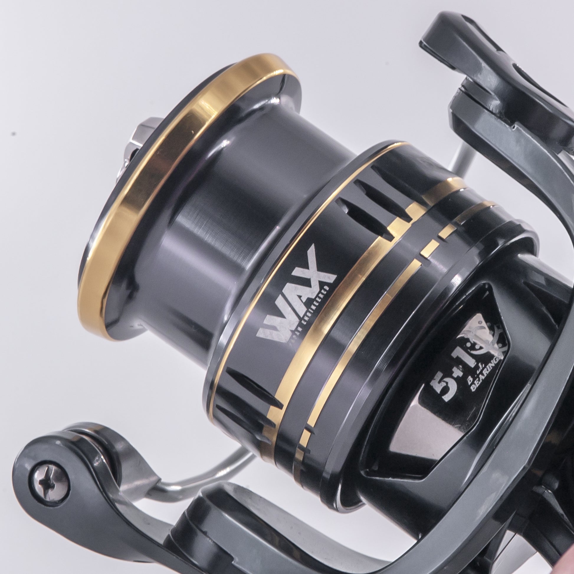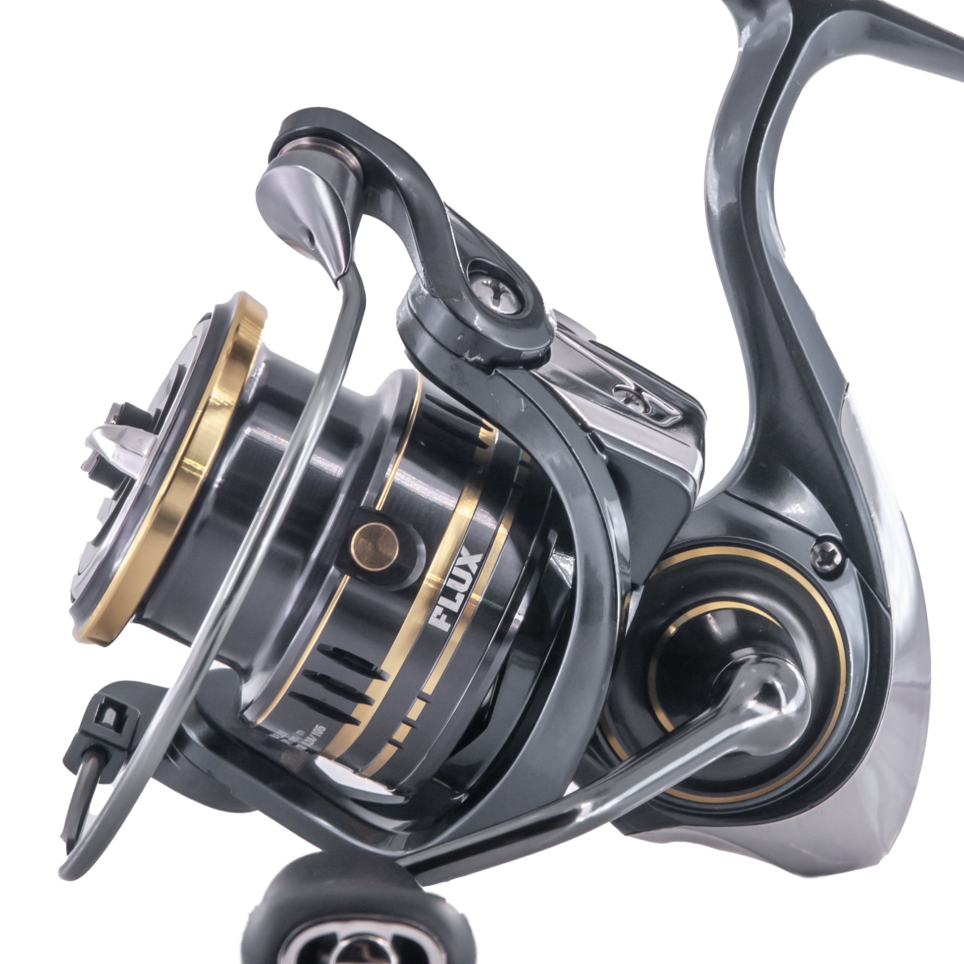 Bobina realezata in alluminio tornito da monoblocco con scanalature che prevengono la fuoriuscita accidentale del filo. Flux dispone di 5+1 cuscinetti in acciaio inox, archetto in alluminio tubolare maggiorato, pomello ergonomico posizionato su un braccio in alluminio curato nel design, il tutto per una migliore esperienza di pesca. La frizione con regolazione micrometrica, l'antintorno